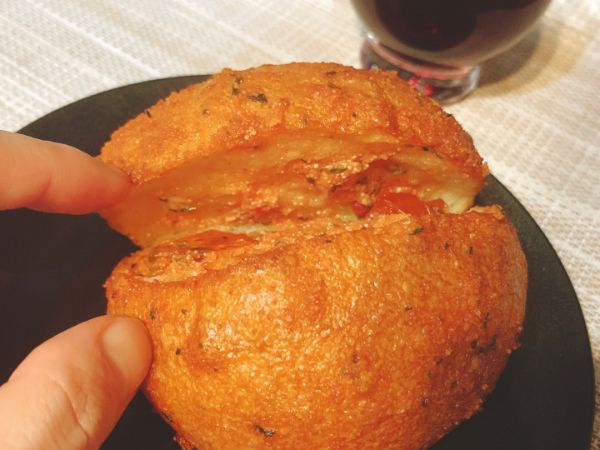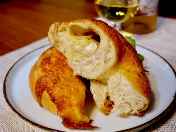 ベーグル生地のもちっと感と明太子のつぶつぶ感。ガツンとガーリックの香りとサンドされているトマト。明太フランスとはちょっと違うこの食感と風味。ピリッとくるのもいい。天才的な組み合わせです。赤ワインが止まらなくなる味。