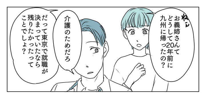 私(マリ、40歳)は激務の夫(トモキ、40歳)と小5の娘(ユウミ)との3人家族。パート勤務で都内に暮らしています。義姉(ナオコ、43歳)は地元の九州で義母と義祖父母の介護をしてきました。義父は他界しています。私たち夫婦は介護に関われない代わりに、毎月決まった金額を義実家へ送っています。しかし義姉が結婚を機に上京することになり「介護を代わってほしい」と頼んできたのです。私たち夫婦は義母や義祖父母を首都圏へ呼び寄せる案を提案しましたが、義姉にシニアの環境変化は負担だと却下されます。私はそもそも義姉が大学卒業時に義実家に戻る必要があったのか、疑問を抱き始めました。