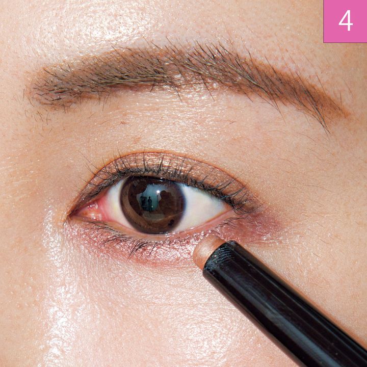 仕上げに、パール感のあるaのローズ系アイシャドウで目の下にラインを引き、涙袋を仕込めば完璧。