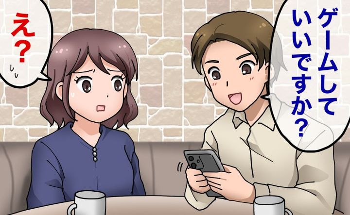 マッチングアプリで出会い、会うことになった男性。初めてのデートはカフェでお茶でした。どんな話ができるだろうとワクワクしていた私でしたが、彼は席につき注文してすぐに「ゲームしていいですか?」とひと言。