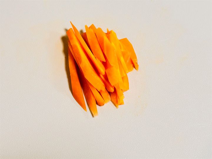 1. 皮を剥いたにんじんを千切りにします。