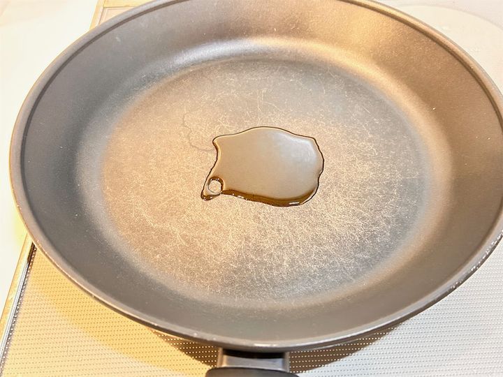 2. フライパンにゴマ油を引きます。