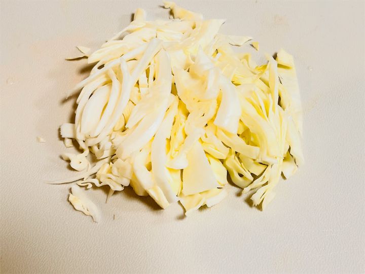 キャベツは芯を切り落として、細切りに。