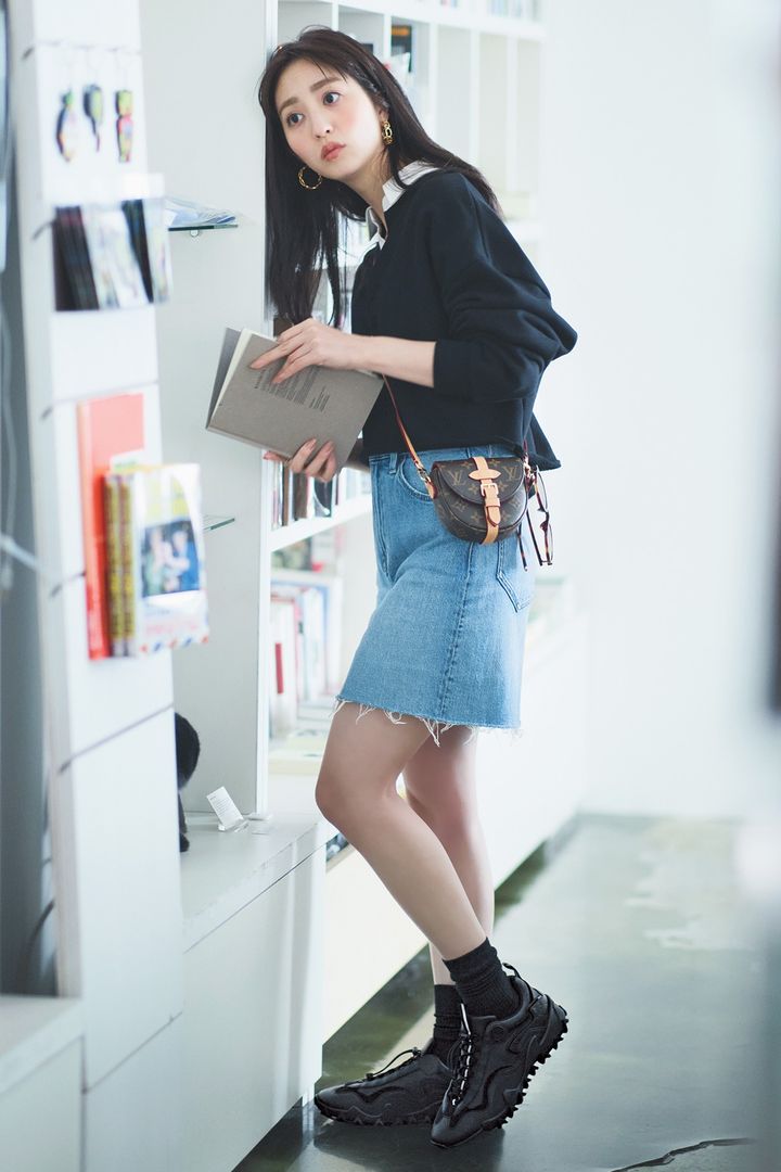 【デニムスカートにゴツめスニーカーが新鮮!】