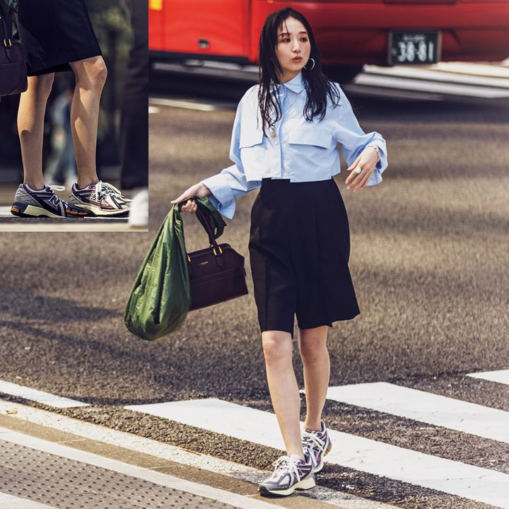 【シャツ×膝丈パンツも、スニーカーで今っぽく刷新】