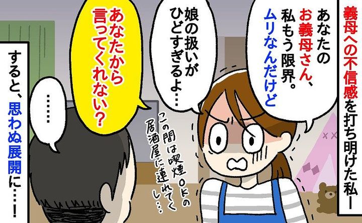 出産前までは義母と「仲良くなりたい」と思っていました。でも、娘が生まれてからというもの、義母の言動に少しずつ違和感を覚えるように。やがて違和感が不信感に変わり、義母の暴走に限界を迎えた私は、思い切って夫に相談しました。すると夫は――。