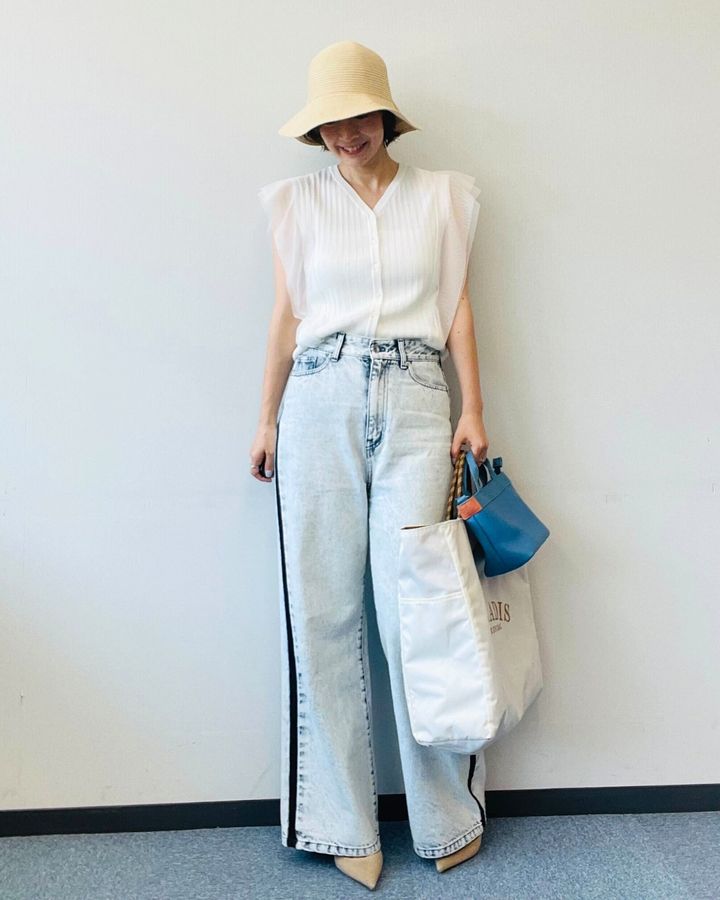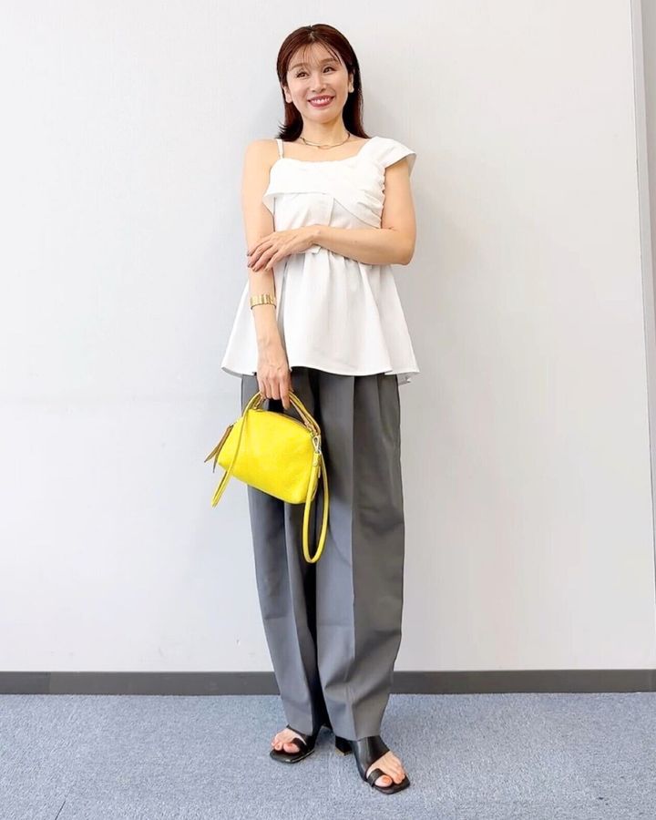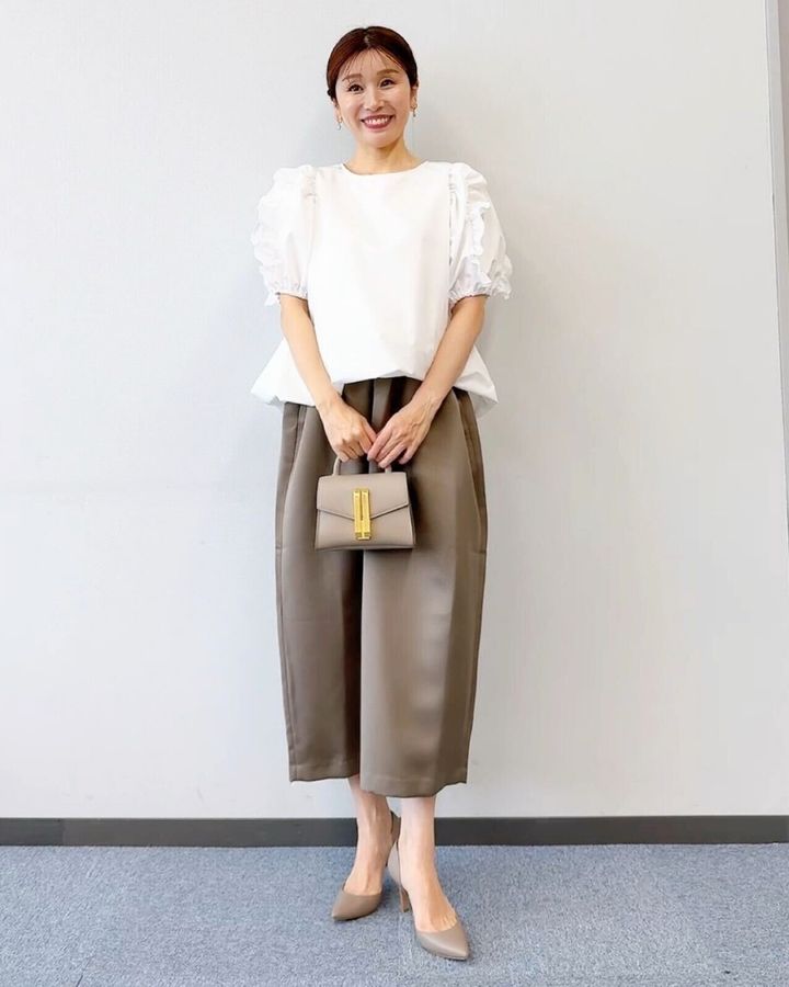 ブラウス¥9,900(アモマ)バッグ¥22,000(エルドット)パンツ¥38,500(ハイク/ボウルズ)