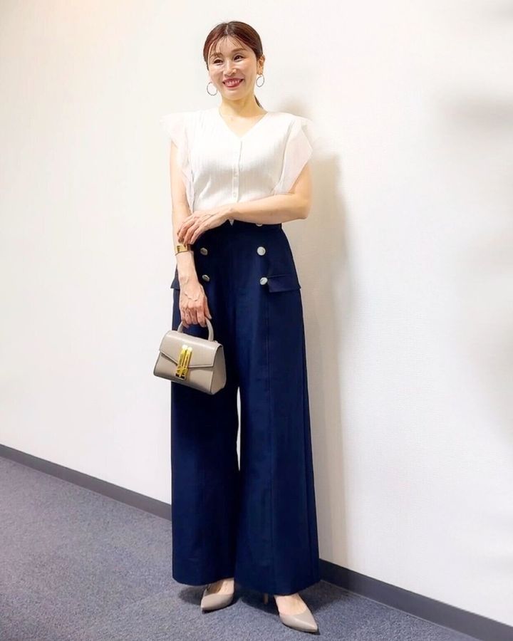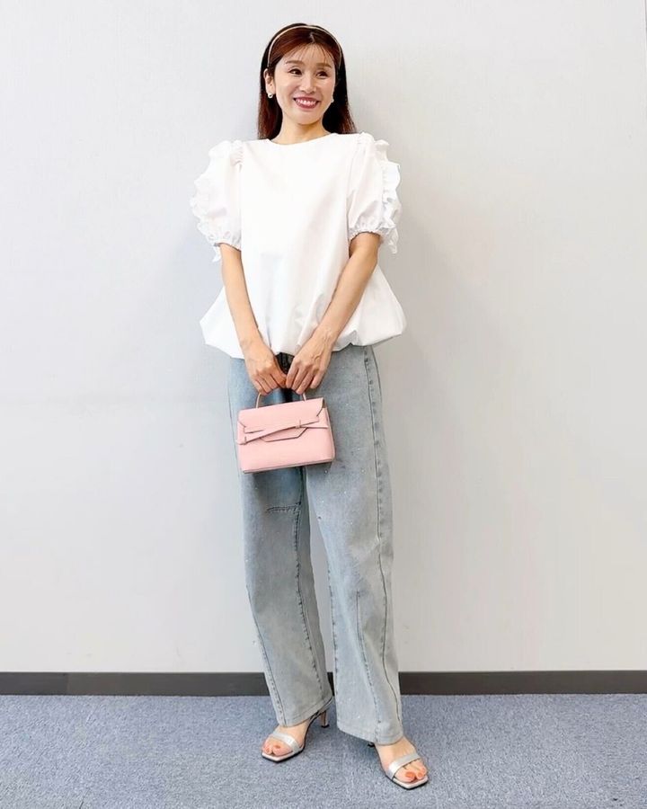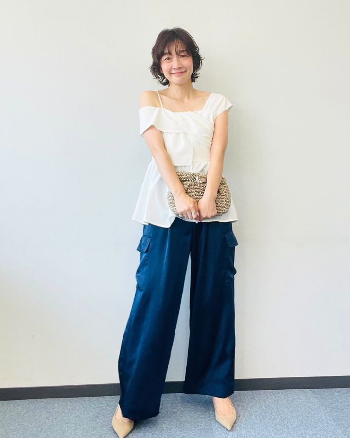 3. ママ友ランチ、夕飲みetc.40代が夏の女子会に着ていきたい「華やかトップス」4選【身長別コーデ】