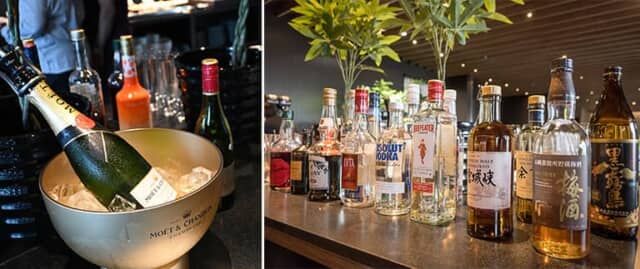 「モエ・エ・シャンドン」も飲み放題のカクテルタイムは、多くのゲストが利用していました。ワインや日本酒、ウイスキーや焼酎などアルコールの種類も多く、おつまみも日替わりで、一口サイズの温製や冷製のメニューが並びます。