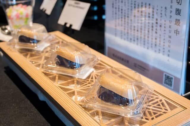「切腹最中」は餡子がたっぷり入っていますが、甘さ控え目なのでペロッと食べられました。明るい時間からビールを飲めるのも嬉しいサービスです。