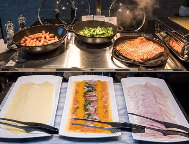 冷製メニューはゴーダチーズやサーモンのカルパッチョ、ハム、だし巻き明太子など。温かい料理はソーセージやおでん、ドライカレーなどが並びます。疲労回復のパワーフードとして注目されるブロッコリーも用意します。