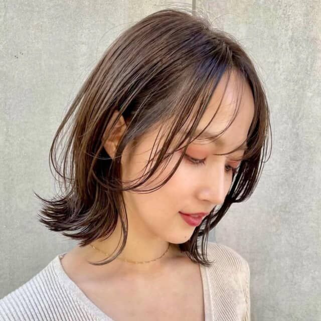 中途半端な長さには、トレンドの「くびれヘア」を取り入れるのが正解。耳下あたりにボリューム感とくびれをつけることで、グッと大人っぽくこなれた印象に仕上がります。