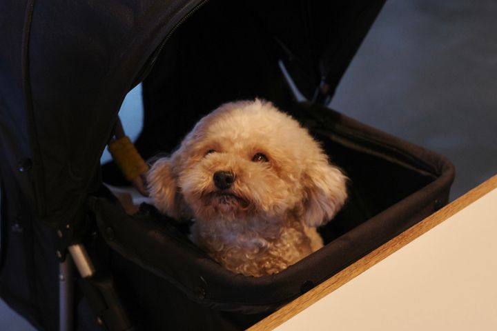 今回は週末の夕方ごろに、ワンちゃんと共にペットカートで入店。