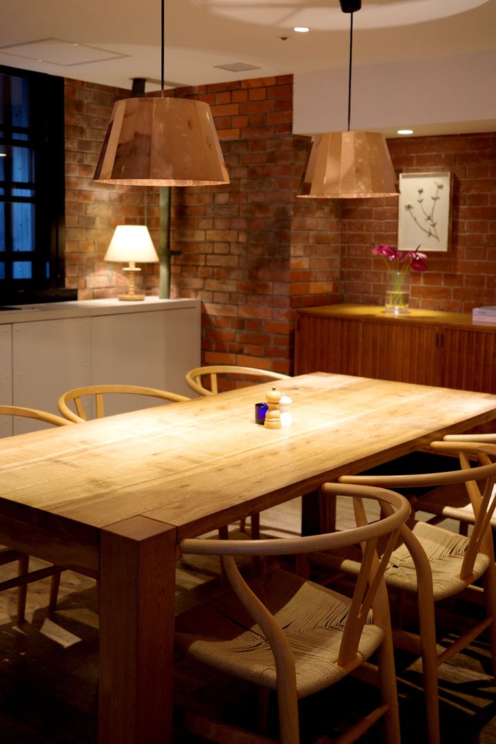 赤レンガの重厚感とキャンドルの柔らかい灯りが組み合わさって、