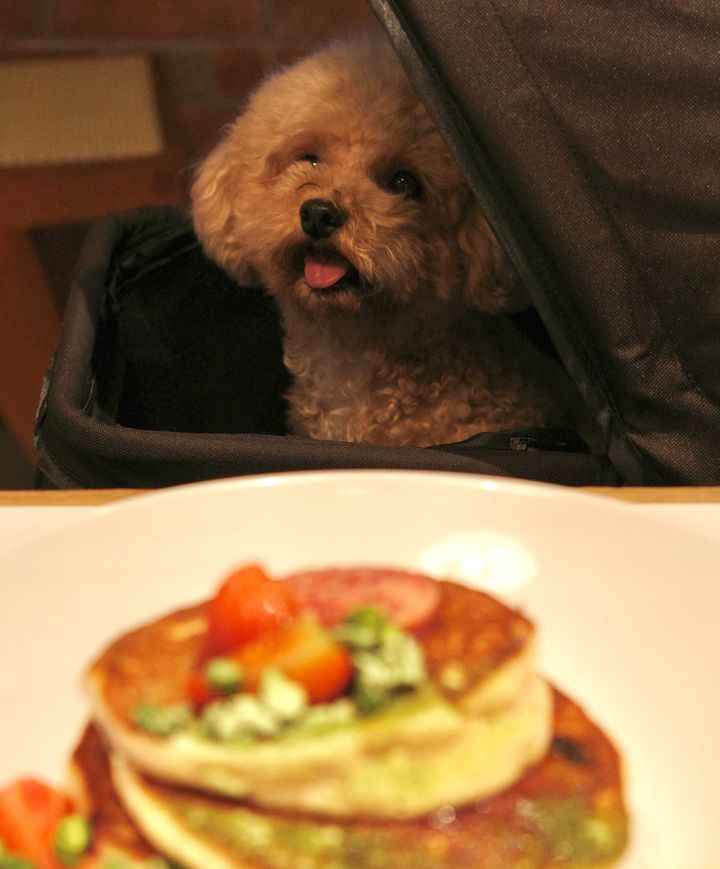 かわいいパンケーキと、ワンちゃんの最高に癒し空間の完成です・・・!