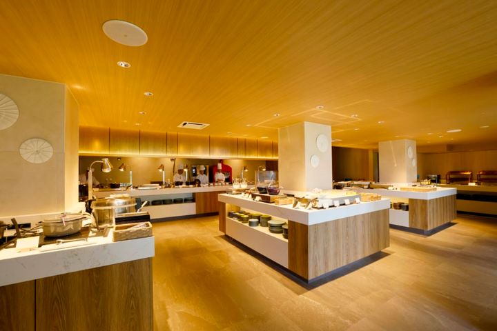今回はレストランも大幅なリニューアルを遂げています! 食事会場は「はいむるぶし」のちょうど中央に位置する「センターハウス」。まずは、洋食・和食・沖縄料理などが楽しるビュッフェレストラン「ザ・ビュッフェ」をご紹介。目の前でシェフが腕をふるうライブキッチン式で、焼き上がりまでの工程すらおいしさを演出! 三面ガラス張りになっているので、景色を一望できるのも特徴です。朝食をとってホッと一息つく剛力さん。“緑も海も見渡せて、最高のロケーション! 南国の太陽によって育まれた島野菜がおいしかった~”。