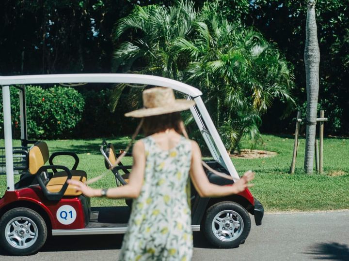 「はいむるぶし」の敷地面積は約12万坪と、思わず笑っちゃうくらいの広さ(笑)。ご飯に行くのも、大浴場に行くのも、海に行くのも、歩くとかなりの距離になるのですが……貸し出される移動カートがあればラックラク! 風を感じながら、好きなタイミングで好きなように移動ができるので、これがすごく便利で最高でした。普段ゴルフをする剛力さん、同じタイプのカートだったので、運転もお手のもの!