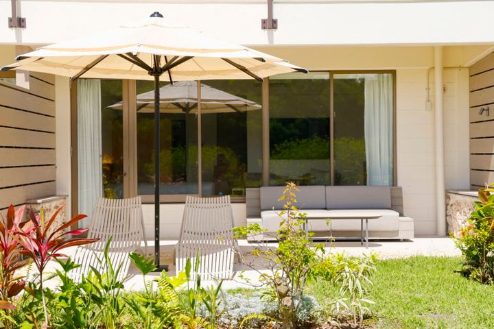 また、今回リニューアルした「ガーデンテラス・プレミアム」にも注目! 40㎡の広々としたプライベートガーデンを備えた客室は、リゾート感溢れる植栽やサンラウンジャーを配置。プールやアクティビティでひと遊びした後のリラックスタイムを、この素敵な空間でゆっくり過ごして。