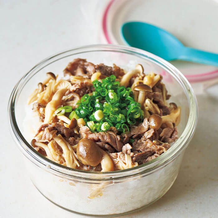 1品作ってご飯にのっけるだけで楽々!きのこでヘルシーにボリューム感を増した【牛丼弁当】レシピ