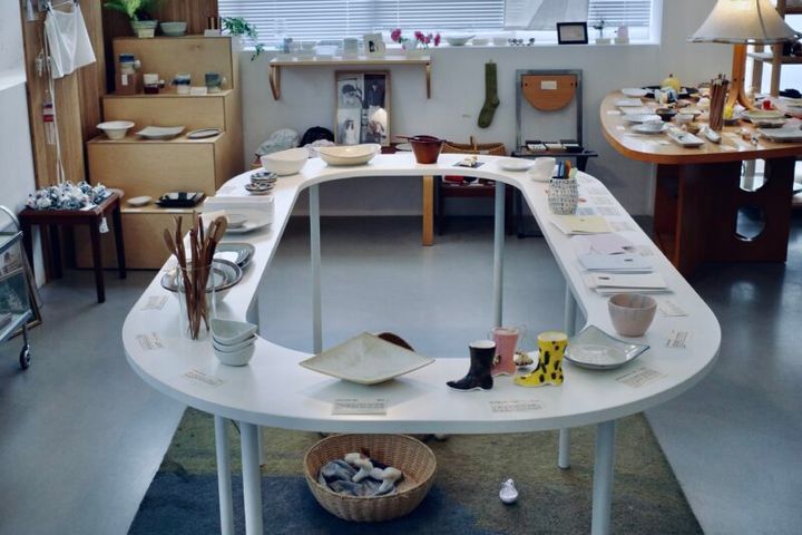 ぽってりとしたカラフルな器や手縫いのポーチ、色ガラスのアクセサリーなど、色合いや素材感に独自のセンスが感じられるものばかりです。