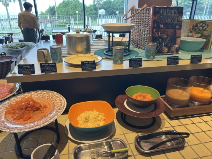 楽しみにしていた朝食はビュッフェスタイル。おいしそうなメニューに、どれも食べたくなります!