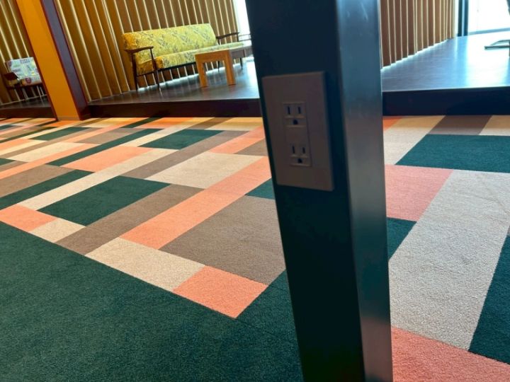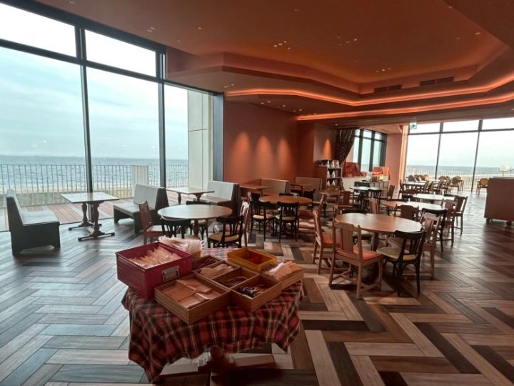 各席の近くには電源コンセントもあり、テーマパークに行く前の充電もバッチリ。ちなみに、家族で泊まりに来て、日中ここで少しお仕事をしているパパさんもいるそう…!