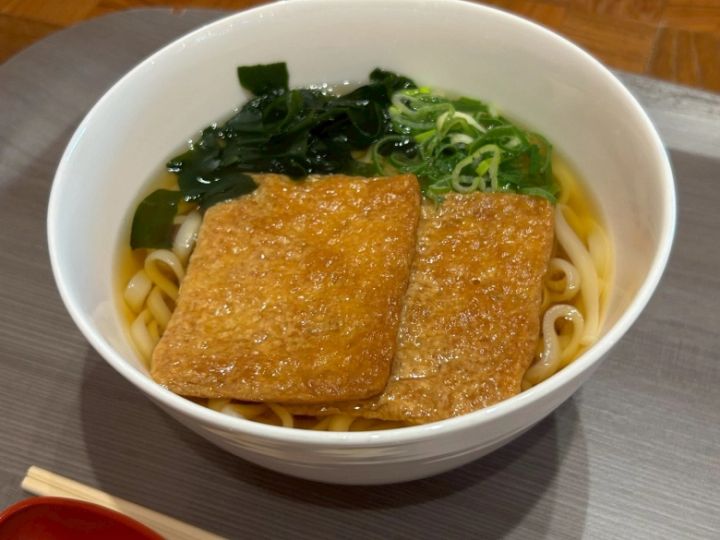 今回は夕食としてきつねうどんをいただいたのですが、優しいお出汁と甘いお揚げが疲れた身体に染み渡りました〜♡