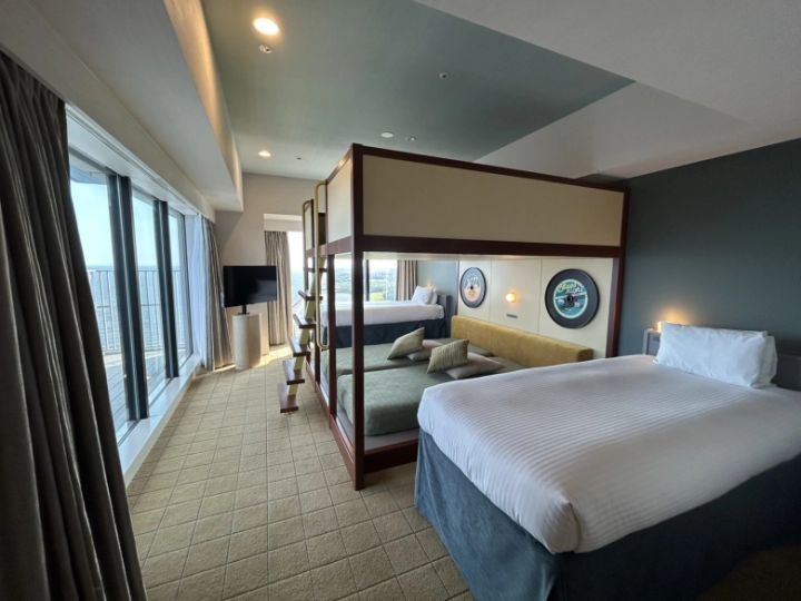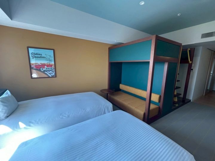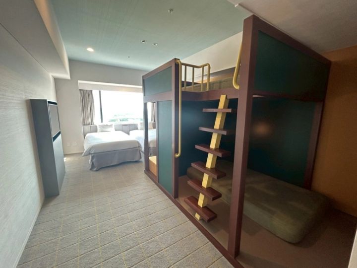 2段ベッドのようなつくりで、子どもも喜びそうな「スーペリアファミリー」。ソファがあるので、子どもが寝た後にママとパパの晩酌タイムも楽しめそう。