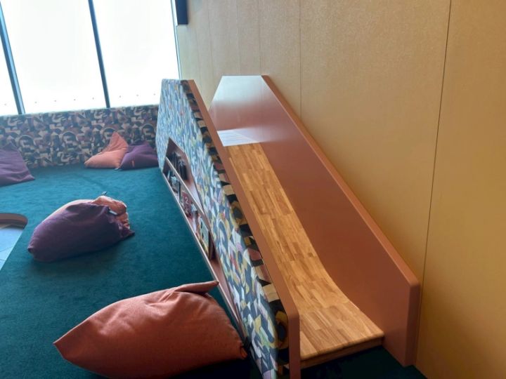 キッズスペースもこちらのブースもチェックアウト前後にも利用できるので、バスを待つ時間や、もうひと遊びしたい子どもたちに大人気のスペースとなっていました!
