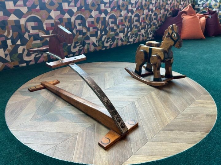 まず、注目すべきは新しいキッズスペース!開業1周年にあわせて増設されたこちらのスペースには、ビンテージの木馬や滑り台、絵本などがそろっていて、とてもかわいらしい空間となっています。