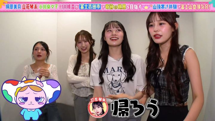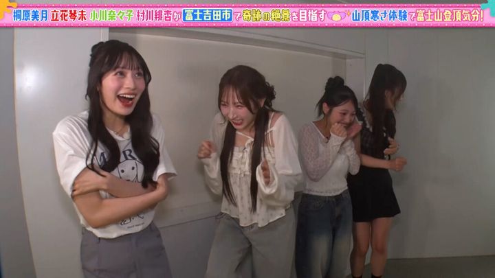 早速4人は「富士山測候所」と書かれた部屋に入るのだが、そこは-25度の山頂の気温が体感できる超極寒スペース。カジュアルな夏服の面々は一歩足を踏み入れた瞬間に大絶叫。小川からは「か、帰りたい…」というロケ続行が危ぶまれる言葉も飛び出した。