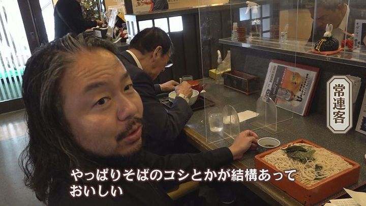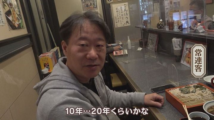 番組スタッフ:「お店に何年くらい来ている?」常連客:「10年…20年くらいかな。ざるそばの冷たさとのど越しは最高です」