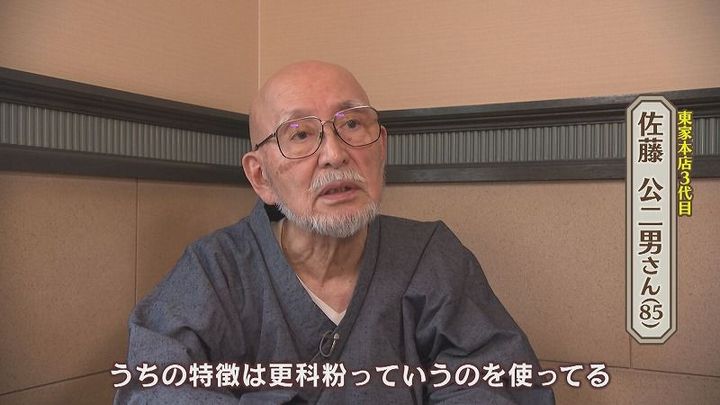 3代目 佐藤 公二男さん:「うちの特徴は更科粉っていうのを使っている。作るときにお湯で練る」