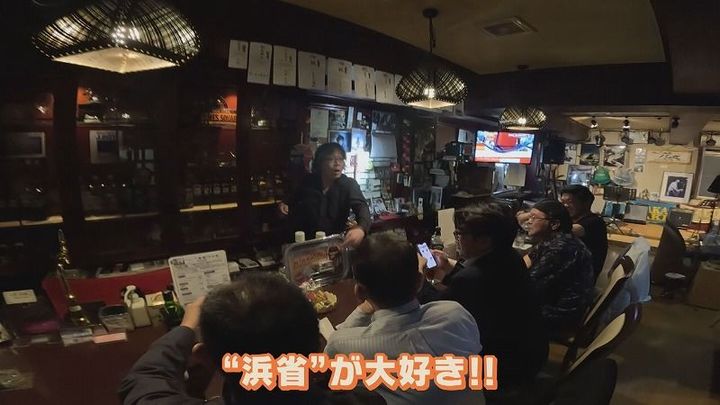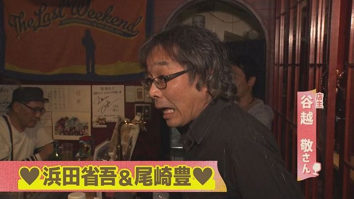 アキさん:「浜省が大好き!私も!」店主 谷越さん:「あっち浜省だらけ!!イエーイ!!」