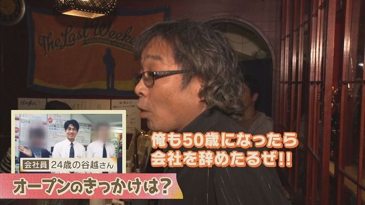 店主 谷越さん:「27年、同じ会社に勤めていた。50歳になったらサラリーマンを辞めて、自分の好きな事やろうと思って。尾崎 豊が17歳で高校を辞めてデビューしたように、俺も50歳になったら会社を辞めたるぜ!!カッコいい!!」アキさん:「個性がイイ!」