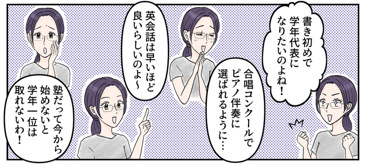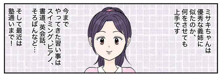 ミサキちゃんにいろいろな習い事をさせてきた義姉。「書き初め大会で代表に選ばれるため」「音楽会で伴奏者になるため」と言っては、ミサキちゃんを頑張らせてきました。義姉はあらゆる分野で、自分の子どもが代表や一番になることを狙っているようなのです。