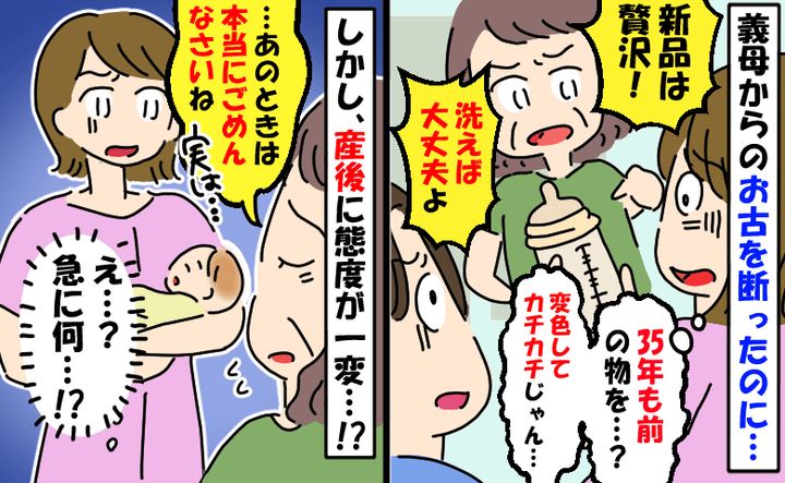 35年前の黄ばんだ哺乳びんを押し付ける義母「絶対使いなさいよ!」しかし産後に態度が一変!?一体何が