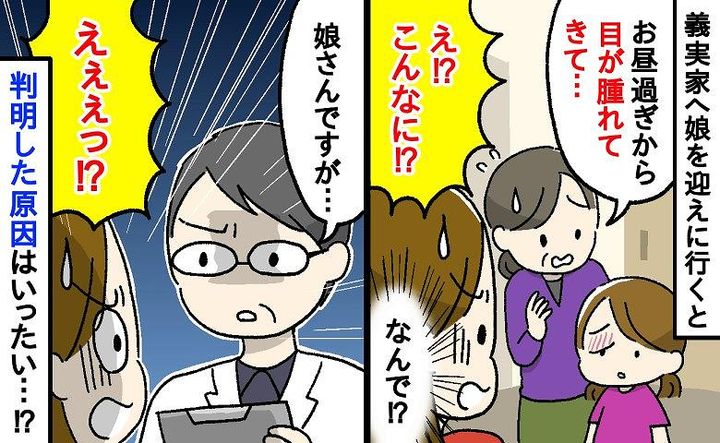 義実家に娘を預け夕方迎えに行くと、なぜか娘の目がパンパンに腫れてしまっていました。病院に連れていったところ、思わぬ原因が判明したのです――。