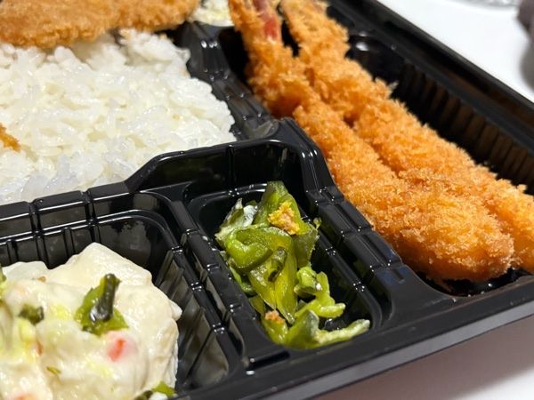 大エビ&コロッケ(ライス・みそ汁・ドリンク付き)1100円。