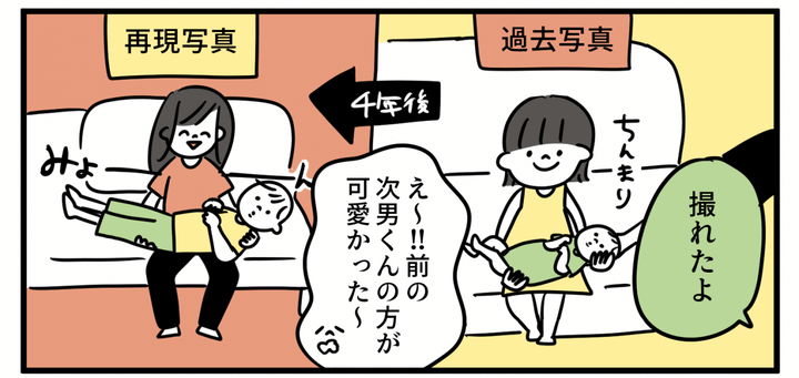 ちなみに「今回再現した写真を撮った時のことを覚えている?」と子どもたちに聞いたところ「全然覚えてない!」「えっお母さん覚えてるの!? すごいね!」とのこと。