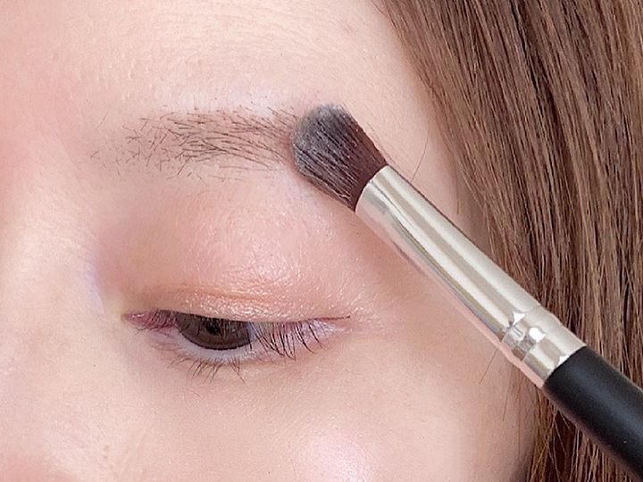 筆者は眉全体がまばらに生えているため、最初にペンシルで隙間を埋めたあと、アイブロウパウダーで描いています。