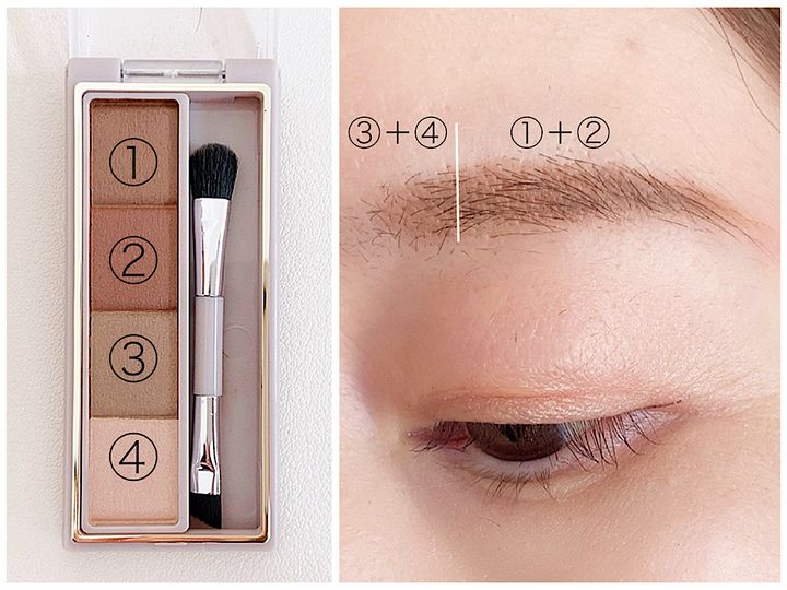 今回、眉頭は③と④、眉の中間から眉尻までは①と②を混ぜて描いています。