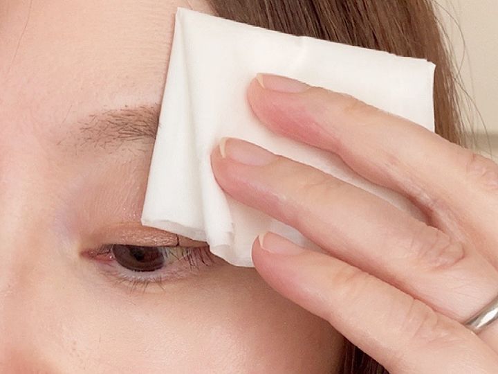 清潔なティッシュやコットンを眉にそっと押し当て、油分を軽く取り除きます。