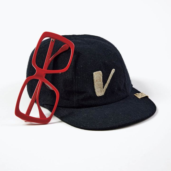 大人にも似合うvisvimのキャップは、表情のある素材感がお気に入り。GUCCIのサングラスはフレームが可愛いのでレンズを抜いて、これから老眼鏡にする予定。