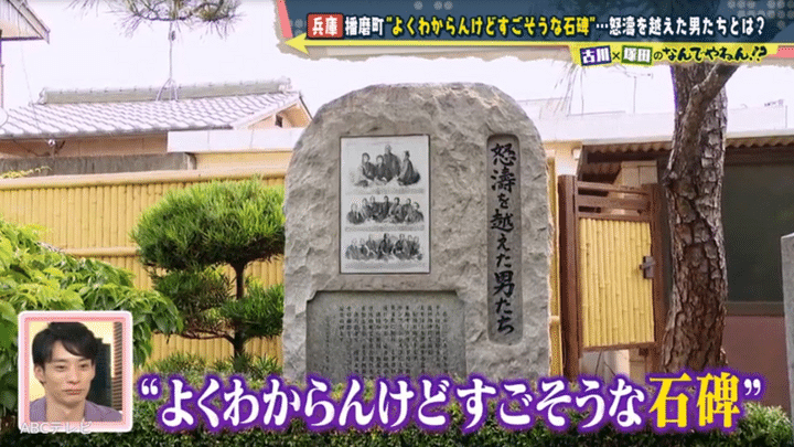兵庫県播磨町に“よくわからんけどすごそうな石碑”があると聞いたA.B.C-Zの塚田僚一とABCテレビの古川昌希アナウンサー。「『なんでやねん』ってそういうもんでしょ」と言いながらも調査したところ、播磨町の人が「なんで大河ドラマにならないのか」と思うほど大きなことをやり遂げた人物が浮かび上がってきた!