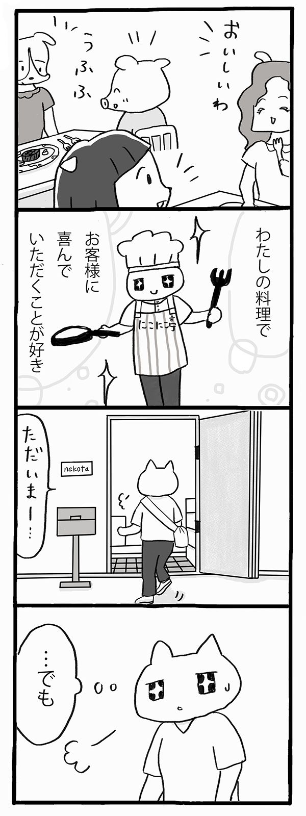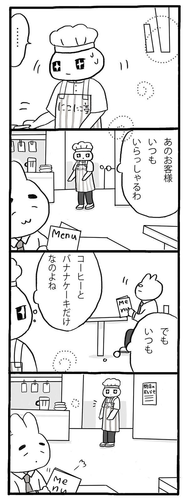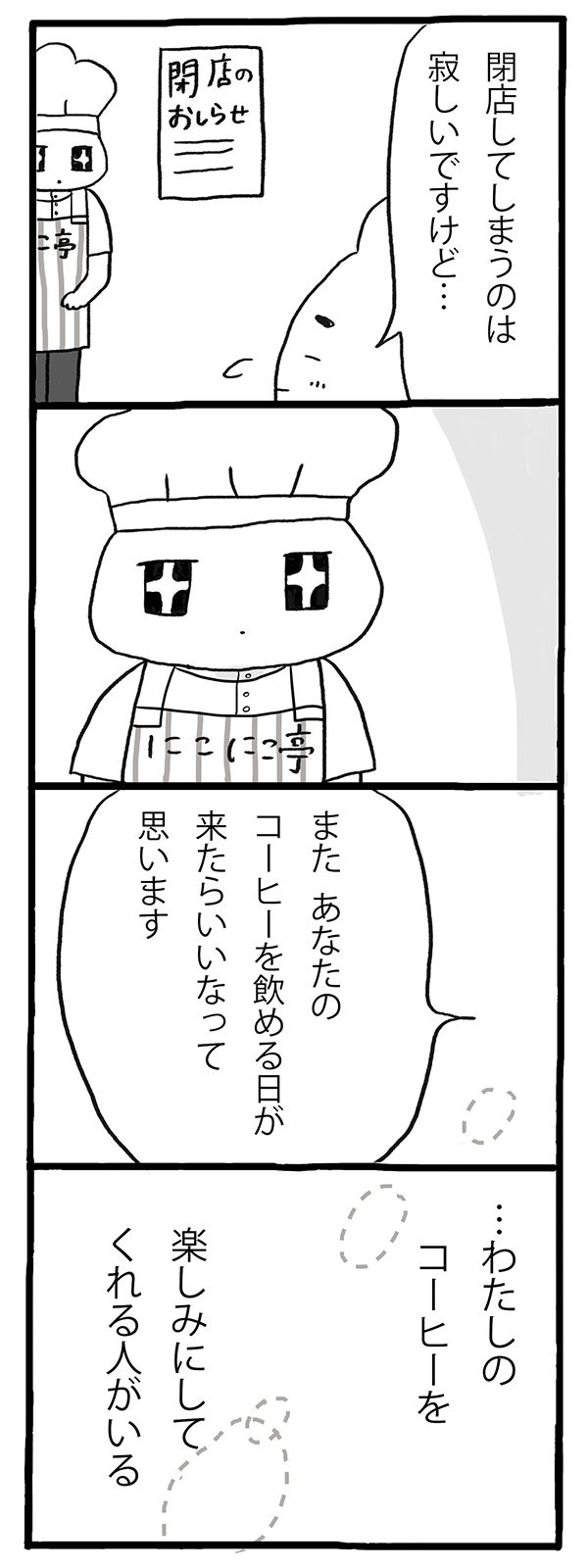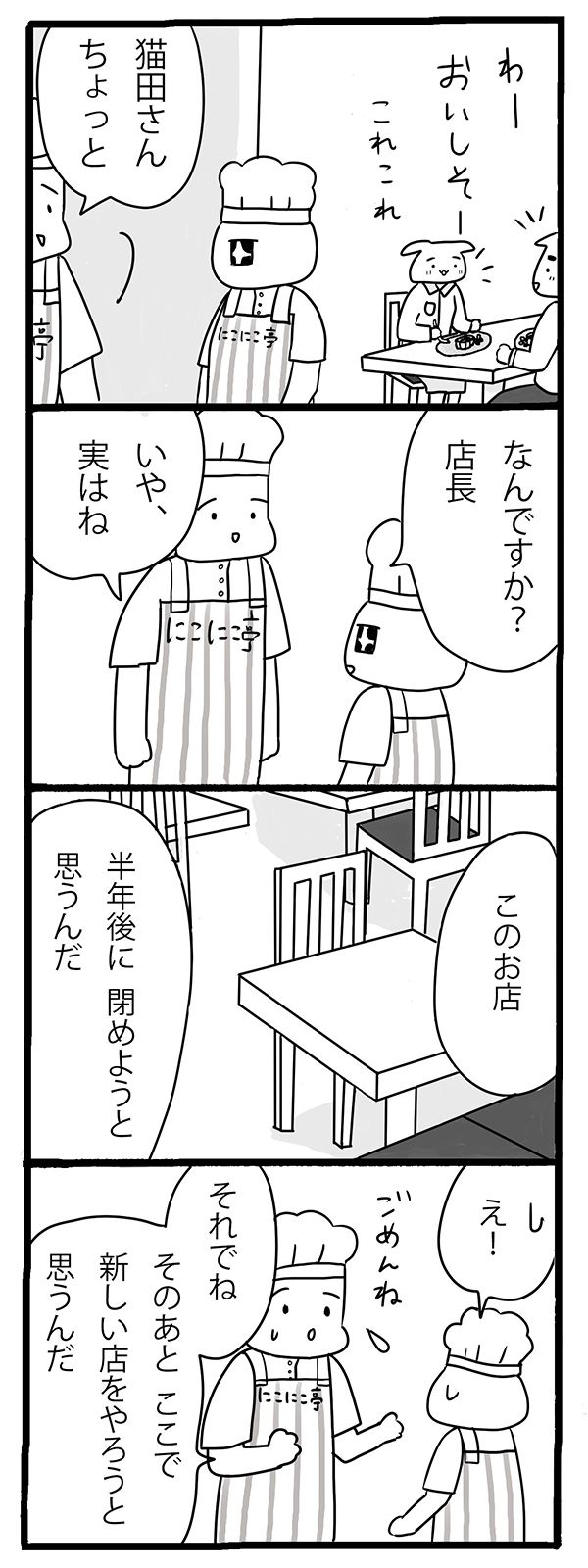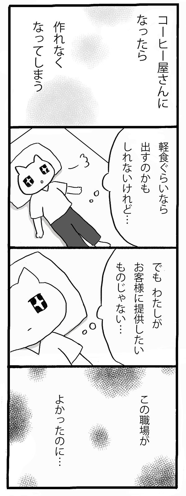 仕事と家族の間で迷いながら、自分のやりたいことを探っていく、イヌミヤさんの物語。お話は完結しましたが、番外編をお届けしています。今回ははらっぱコーヒーの上司・猫田さんのお話です。