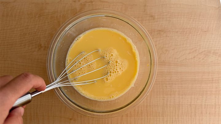 卵と蜂蜜をボウルに入れてよく混ぜ合わせ、1を少しずつ加えながら混ぜたら、ザルで濾す。