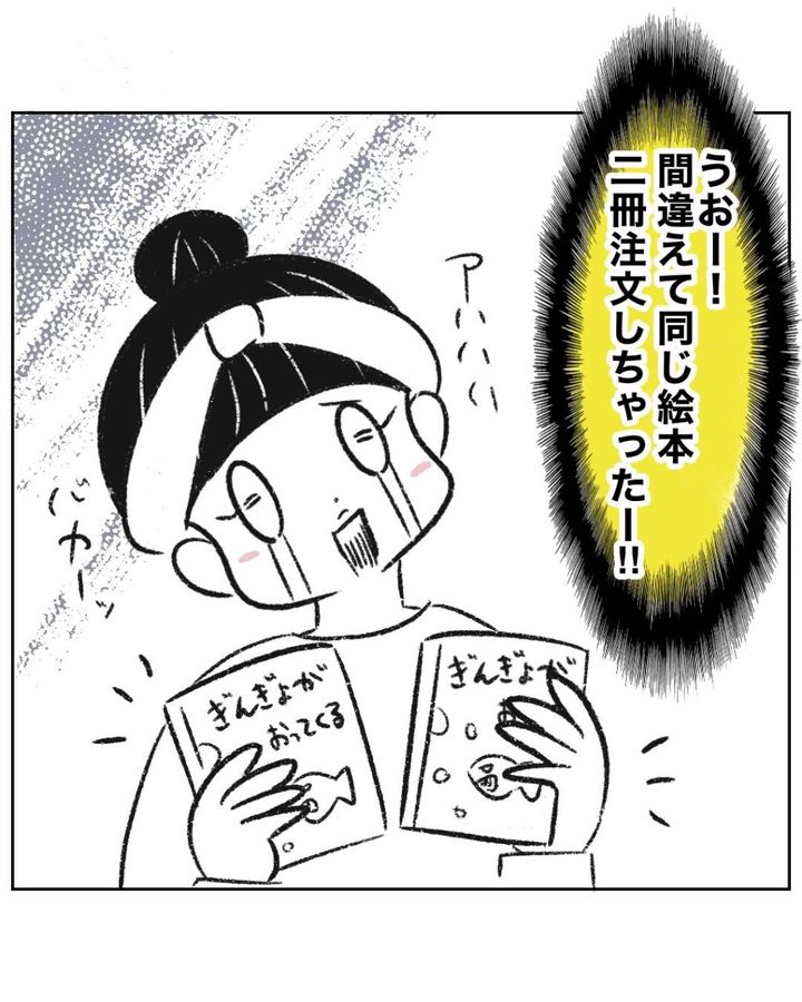 「うおー!間違えて同じ絵本二冊注文しちゃったー!!」と思わず泣き笑い。