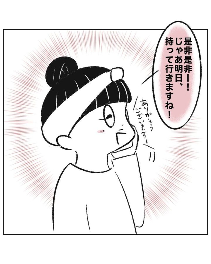 「是非是非ー!じゃあ明日、持って行きますね!ありがとうございますー」と電話で伝えたまるさんは、