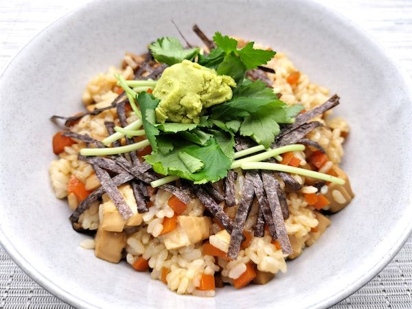 干ししいたけは前日から戻しておく必要がありますが、その分しっかりとだしが出ていて、昆布やかつお節のだしと一緒にだしが利いています。だしがしっかりしているせいか、ご飯にまぶすとしょうゆの味も濃く感じず、のりやわさび、三つ葉といったアクセントと一緒に、止まることなくあっという間に食べてしまいました。